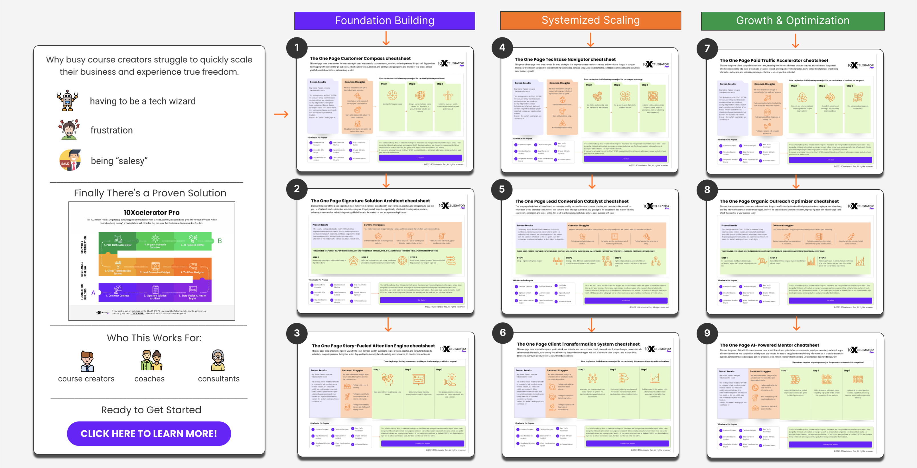 I created this program to help coaches, consultants, speakers, authors, and experts quickly transform more lives in less time while improving their revenue without frustration, being “salesy”, or having to be a tech wizard.